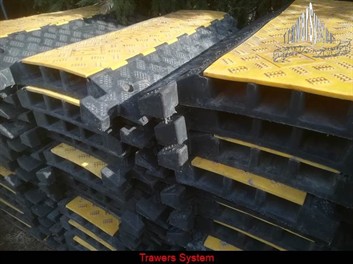 Najazdy to rozwiązanie w miejscach wzmożonego ruchu pieszych i pojazdów silnikowych, w których konieczne jest zamieszczenie kabli i przewodów elektrycznych. Najazd kablowy zwany progiem ulicznym z wkładką prowadzącą przewody energetyczne i kable audio i video wewnątrz najazdu, zapobiegając krzyżowaniu się i poplątaniu. Gotowe do układania w dowolnym miejscu, doskonale chronią przewody i kable prowadzone przez place, drogi i ulice. Najazdy można układać obok siebie, według potrzeby, łącząc je ze sobą za pomocą wkładki przesuniętej o wpusty. Najazdy kablowe są bardzo skuteczne, w sytuacjach gdy niezbędne jest zabezpieczenie, uporządkowanie i ukrycia przewodów elektrycznych. Posiadamy oryginalne, firmowe najazdy, które wytrzymują obciążenie nawet 10 ton. Posiadają antypoślizgową konstrukcję, są całkowicie odporne na warunki atmosferyczne. Mogą być stosowane również w pomieszczeniach zamkniętych. Nie wymagają mocowania do powierzchni. W magazynie dostępnych jest 420 metrów certyfikowanych najazdów kablowych o różnych przelotach od dwuprzelotowych do pięcio przelotowych